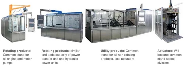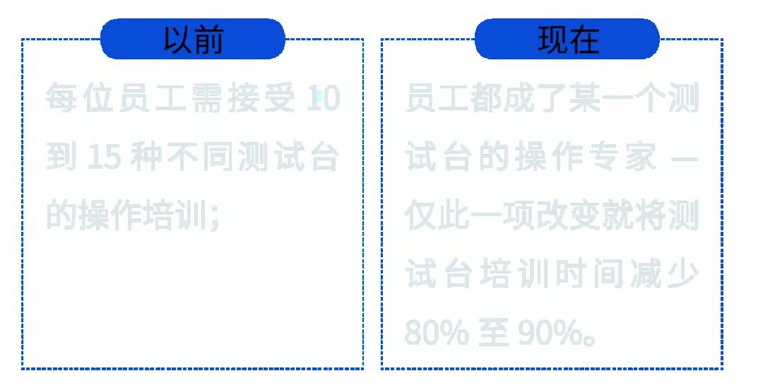 HSD引入了通用測(cè)試臺(tái)架,并對(duì)新臺(tái)架做出戰(zhàn)略性部署 – 經(jīng)規(guī)劃,單個(gè)通用臺(tái)架擁有多種測(cè)試能力,取代并減少原有單一用途臺(tái)架的數(shù)量。發(fā)展到現(xiàn)在,通用臺(tái)架能支持不同零件的測(cè)試工作。此項(xiàng)改變將HSD總部工廠的臺(tái)架數(shù)量從83個(gè)減少到不到40個(gè),測(cè)試臺(tái)配置也從70多種降低到只有16種,大幅度提升運(yùn)作效率。此外,機(jī)器數(shù)量的減少和生產(chǎn)效率的提高也能幫助降低能耗及使用成本。